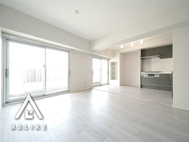 お客様A: (リビングに入って)わあ、すごく明るいですね!この約12.2帖のLDK、窓が大きくて開放感があります。