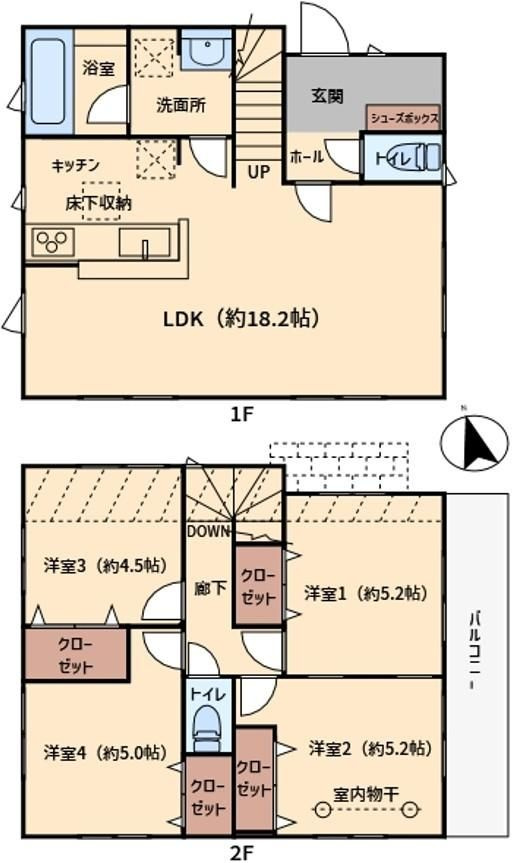 LDK 18.2帖 1室 / 洋室 5.2帖 2室 / 洋室 5.0帖 1室 / 洋室 4.5帖 1室 / |