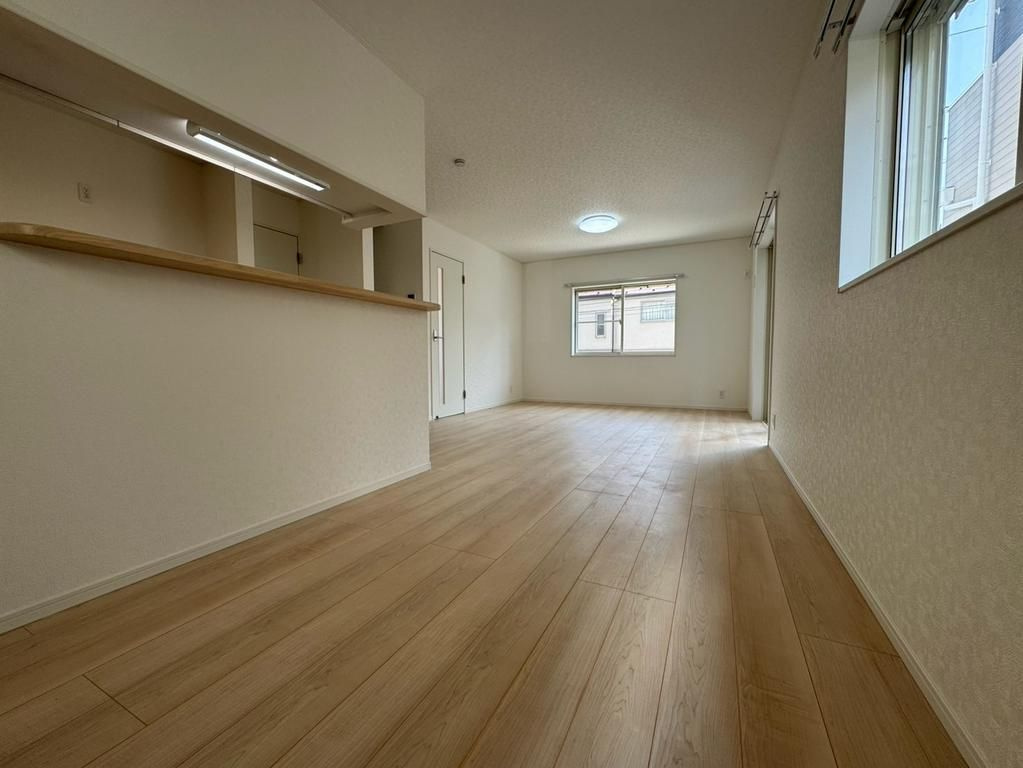 【居間・リビング】充実の設備、暮らしの安心が家族を笑顔に♪「一人一部屋」の希望が叶う4LDK◆カースペースがあります◆南向きで採光部が多いので居住性◎◆18帖超のワイドスパンLDK
